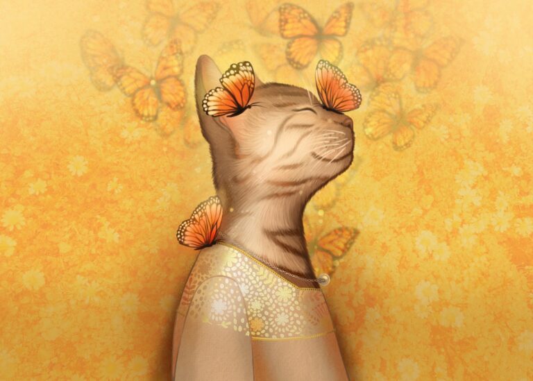 Bengali kass, kelle pea ümber lendavad Monarhliblikad kujutab minu jaoks muinasjuttu või ilusat unenägu. Soovi, et igas argipäevas oleks killuke lendelvat ja sädelevat kulda justkui liblika tiiva värelus. Vanasõnaks selle pildi juurde on juudi rahvatarkus – “Life is just like…