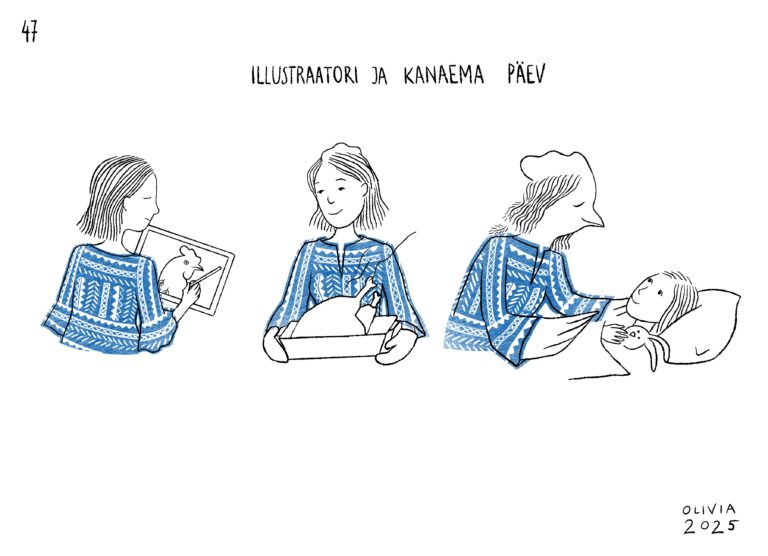Koomiksipiltide joonistamine meie pere eredamatest ja naljakamatest hetkedest, on saanud mu elu osaks. Mu digimaali tehnikas maalitud piltidele kulub pikk aeg ja AI kõrval töötades tuleb leida moodiseid ja uusi tehnikaid, kuidas end väljendada. Ka raamat, mille Tarieli ja Mikaga…