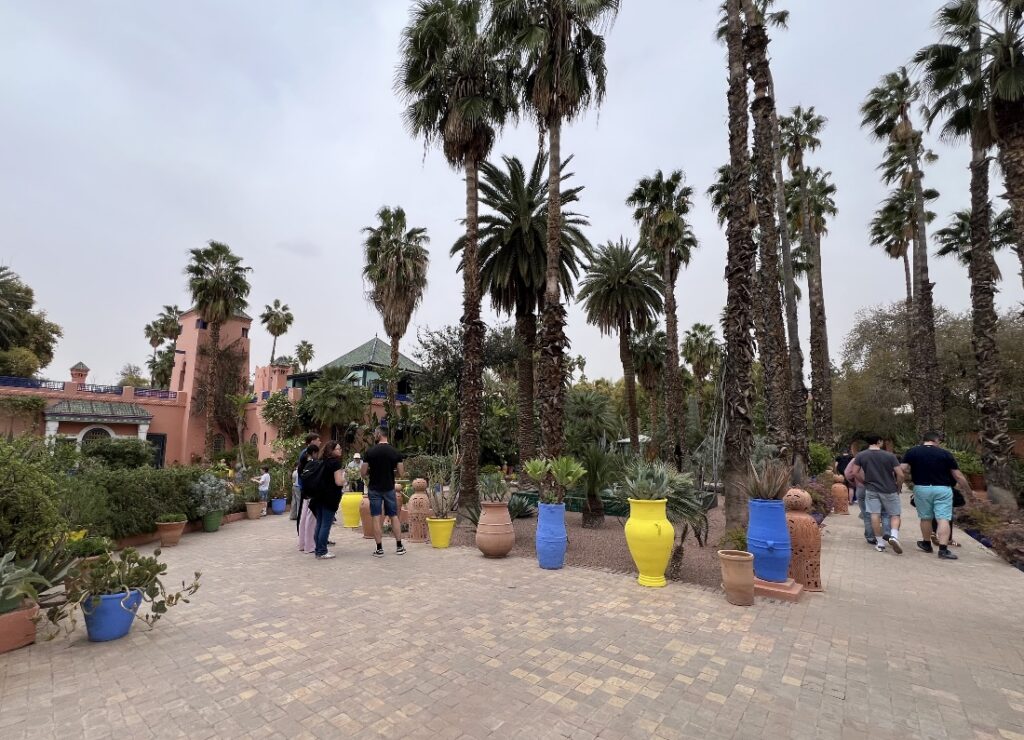 Meie Marrakeshi kodu asus kuulsale Majorelle aiale üsna lähedal. Jalutasime sinna juba saabumisjärgsel päeval ning saime teada, et aeda pääsemiseks on vaja piletit ja broneeritud aega. Nägime ka järjekordi ja silte, mis näitasid inimeste sissepääsu kellaaegu. Samamoodi nagu Mexico Citys Frida muuseumi juures. Otsustasime tulla siia hiljem ning lõpuks jõudsime aeda alles oma reisi eelviimasel päeval. Pileteid broneerides selgus, et järgmiseks päevaks vabu aegu pole, nii et tuli broneerima aeg ülejärgmiseks päevaks. Seega soovitus – varuge aia külastamiseks aega, sest see koht on tõesti populaarne.