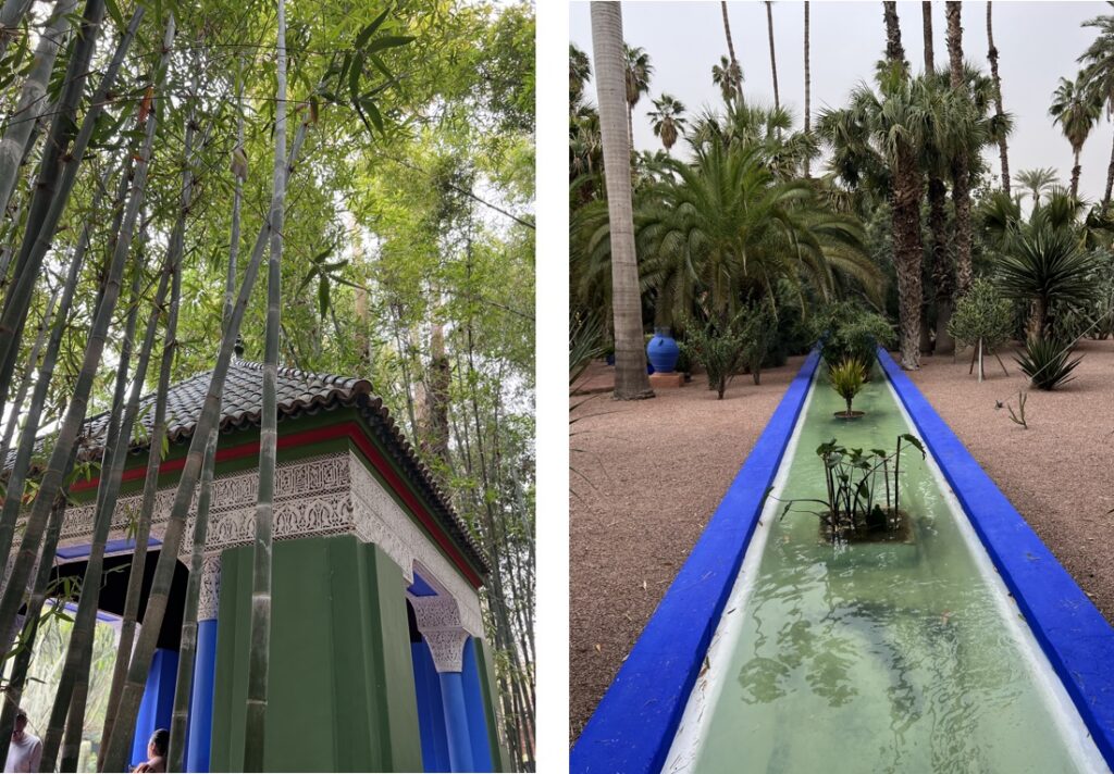 Marrakeshis on vähe parke, meil õnnestus käia vaid ühes kaunilt hooldatud ja tasuta pargis (paljud ilusad pargid on Marrakeshis tasulised). Kuid Majorelle aed on tõesti vaatamist väärt. Ka on see piisavalt suur, et ei tekiks ülerahvastatuse tunnet. Linnulennult vaadatuna koosneb aed kahest hiigelrombist, mis on nurkapidi koos. Sissepääsu poolt esimeses aiaosas asub Sinine villa ja tagumises Villa Oasis. Mõlemas aia osas on ka purskkaeve ja tiike koos vesirooside ja koi kaladega. Aias on palju aiavahte, turvamehi ja koristajaid, aga see on Marrakeshis tavaline, et teenindajaid on alati rohkelt. Pargivahid kandsid kenasid Majorelle-siniseid vormikuubesid, nii et nad väga ilusasti ümbrusega harmoneerusid.