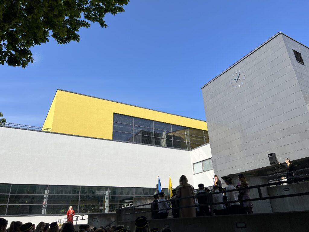 Meeskond tegi oma tööd väga hästi ja me olime kenasti graafikus. No mina tegin autos kahe minutiga endale meigi ja Mika hakkas juba koolimaja treppide poole kõndides ühislaulu laulma. Aga me jõudsime ikkagi ilusti lõpuaktuse ajaks. Meie ilus kollane koolimaja oli päikeskullaga ülekallatud ja oli juba mõnusalt soe, kui Mika oma kolla-musta-valgetes koolivormides kaaslaste summa sukeldus.